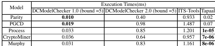 - 验证了 LTL_LIA 中的合成不变式,这是 MCC 工具和 DCModelChecker 1.0 均不具备的能力,扩展了可验证性质的范围。