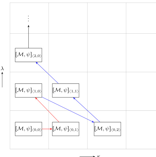 如下图所示,2D-BMC 算法通过递增 k 探索状态空间,对每个 k 迭代所有可能的 (λ,κ) 对。对每对组合,构建并检查 SMT 公式。若可满足,返回反例轨迹;若不可满足,增加边界。
