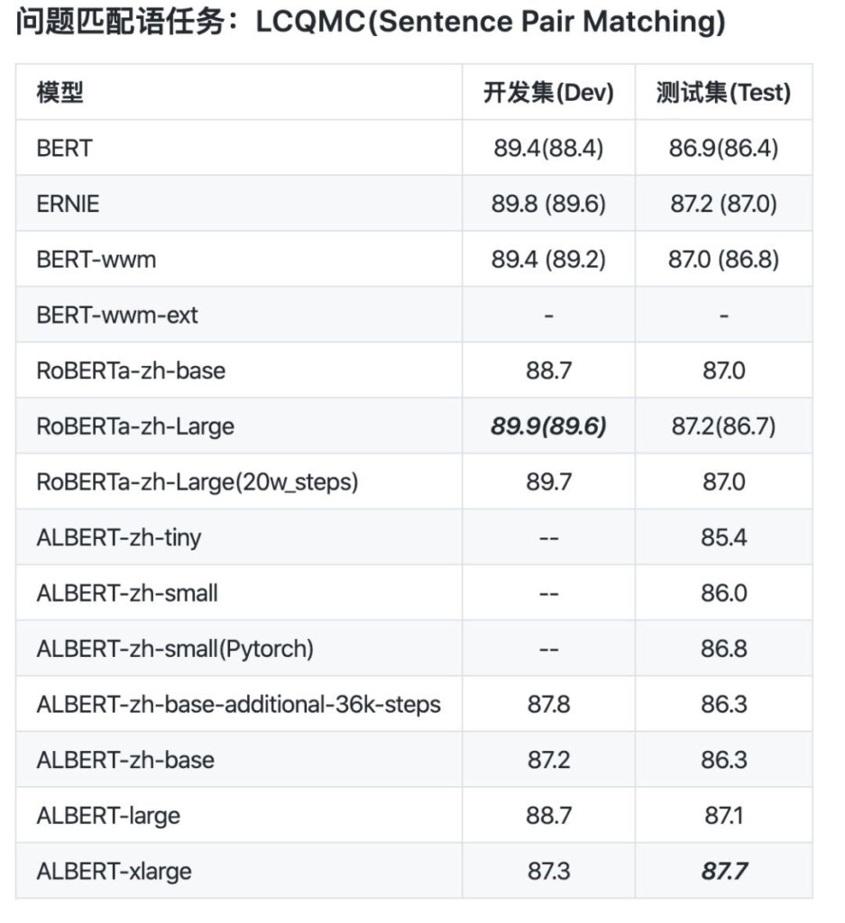 In addition, albert_zh trained a series of ALBERT models with different parameter sizes, from tiny to xlarge, which greatly promoted the popularity of ALBERT in the field of Chinese NLP.