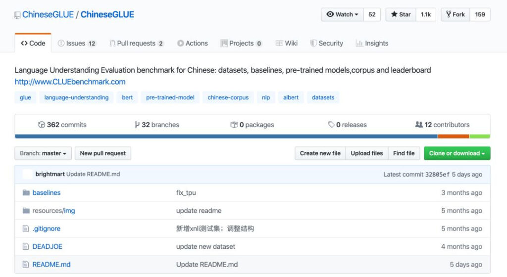 At the end of December 2019, the project was migrated to a more comprehensive and more technically supported project: CLUEbenchmark/CLUE.