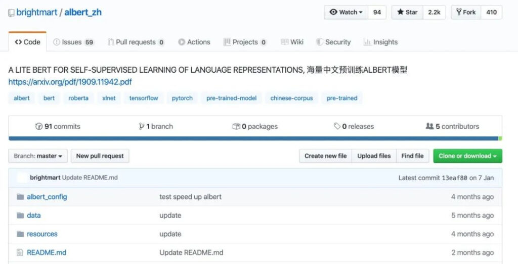 In order to make this model usable in the Chinese context and benefit more developers, the team of data engineer Xu Liang opened up the first Chinese pre-trained ALBERT model in October 2019.
