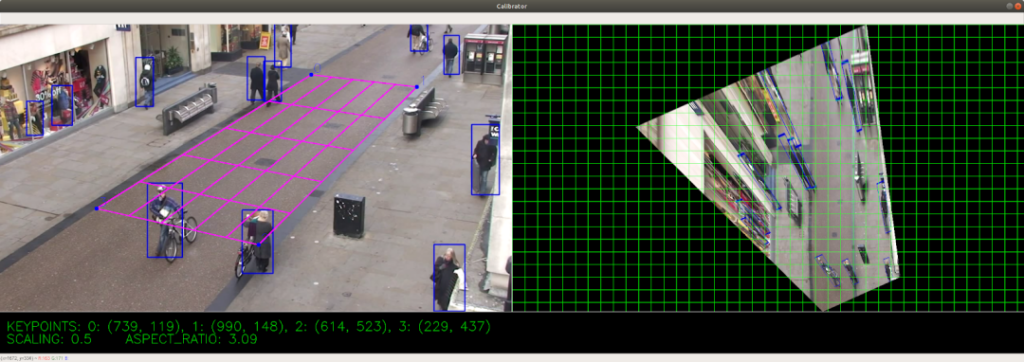 Since the video input may come from multiple angles, and different angles will cause the distance to change, in order to ensure the effectiveness of the distance, it needs to be converted to a fixed plane. The first step is to convert the entire screen into a bird's-eye view.