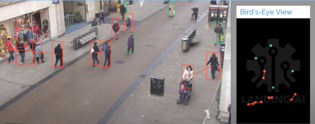 Landing AI demonstrated the tool using the public street view dataset "The Oxford Town Centre".