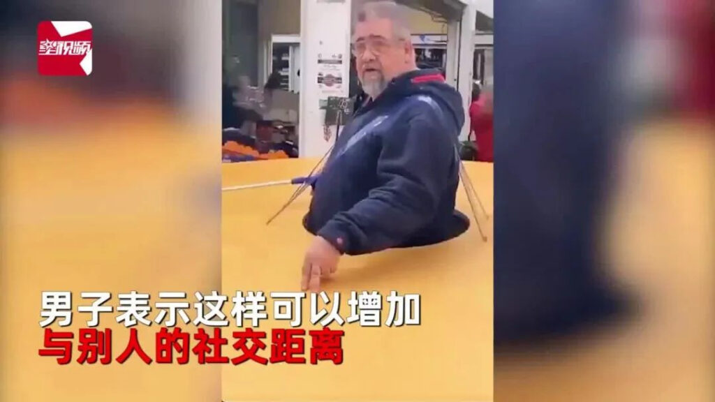 Some time ago in Italy, a man adopted hardcore physical isolation and went shopping in a supermarket with a huge round plate.