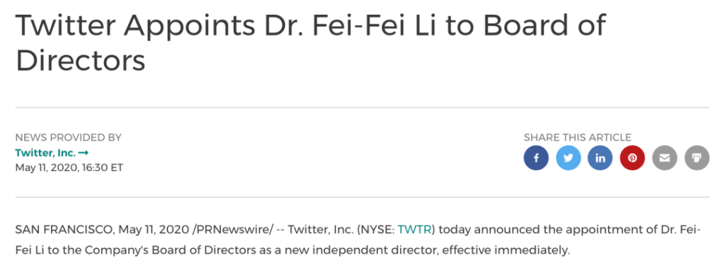 For Twitter,It is hoped that Fei-Fei Li’s joining will restore investors’ confidence and bring real changes to the rampant fake news on Twitter.