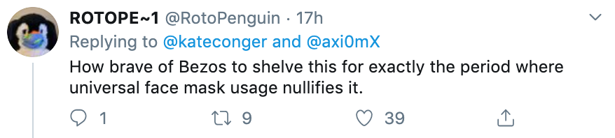 @RPTOPE~1: How brave Bezos was to stop this business, because facial recognition is useless during this period of wearing masks.