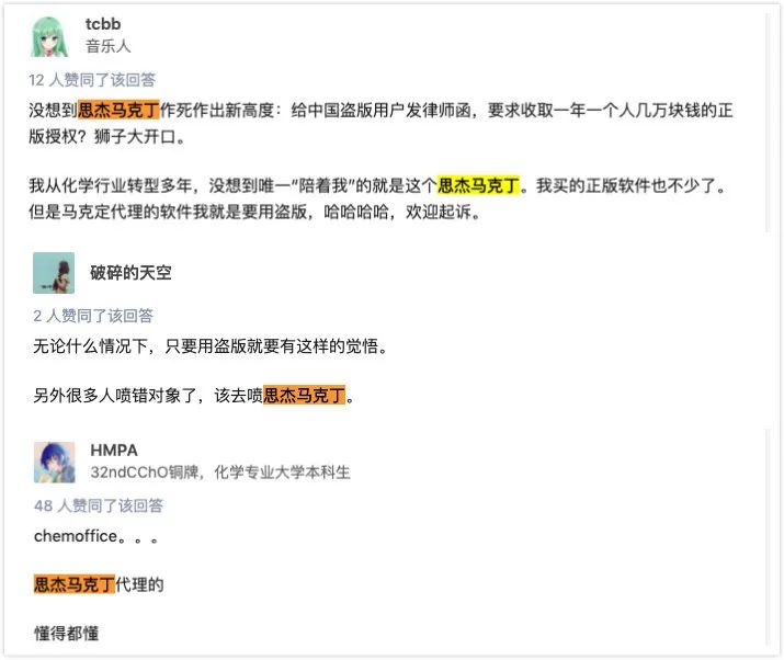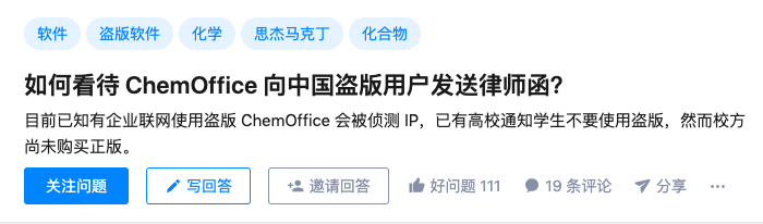 Regarding this incident, netizen @Yungstedt asked a question on Zhihu:What do you think of Chemoffice sending a lawyer's letter to Chinese pirated users?