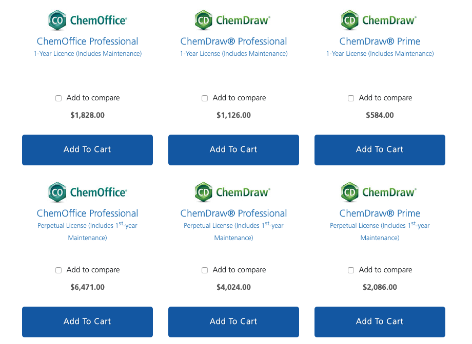 ChemOffice prices for individual users excluding tax