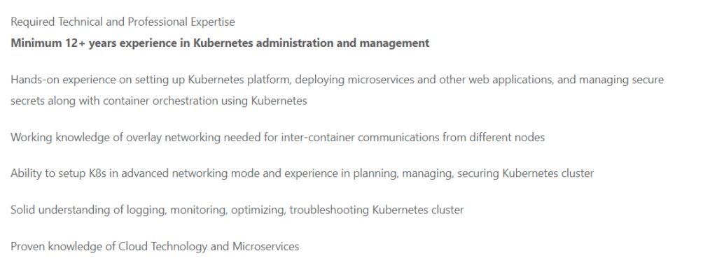 Candidates are required to have more than 12 years of Kubernetes management experience