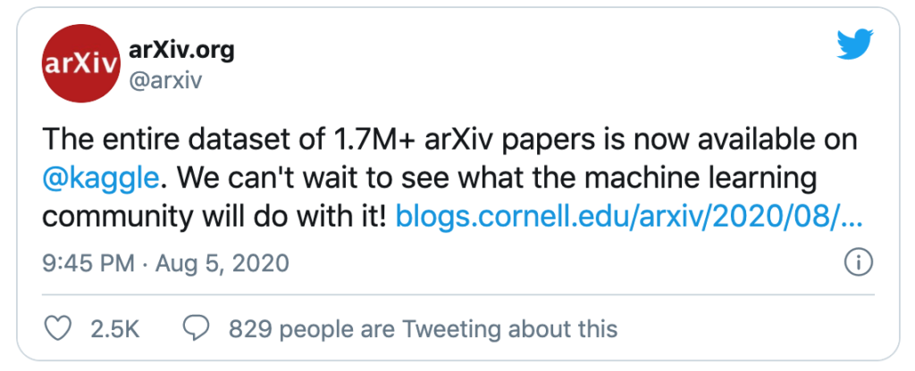 So, to make arXiv more accessible, Cornell University now offers a free, open arXiv dataset on Kaggle.