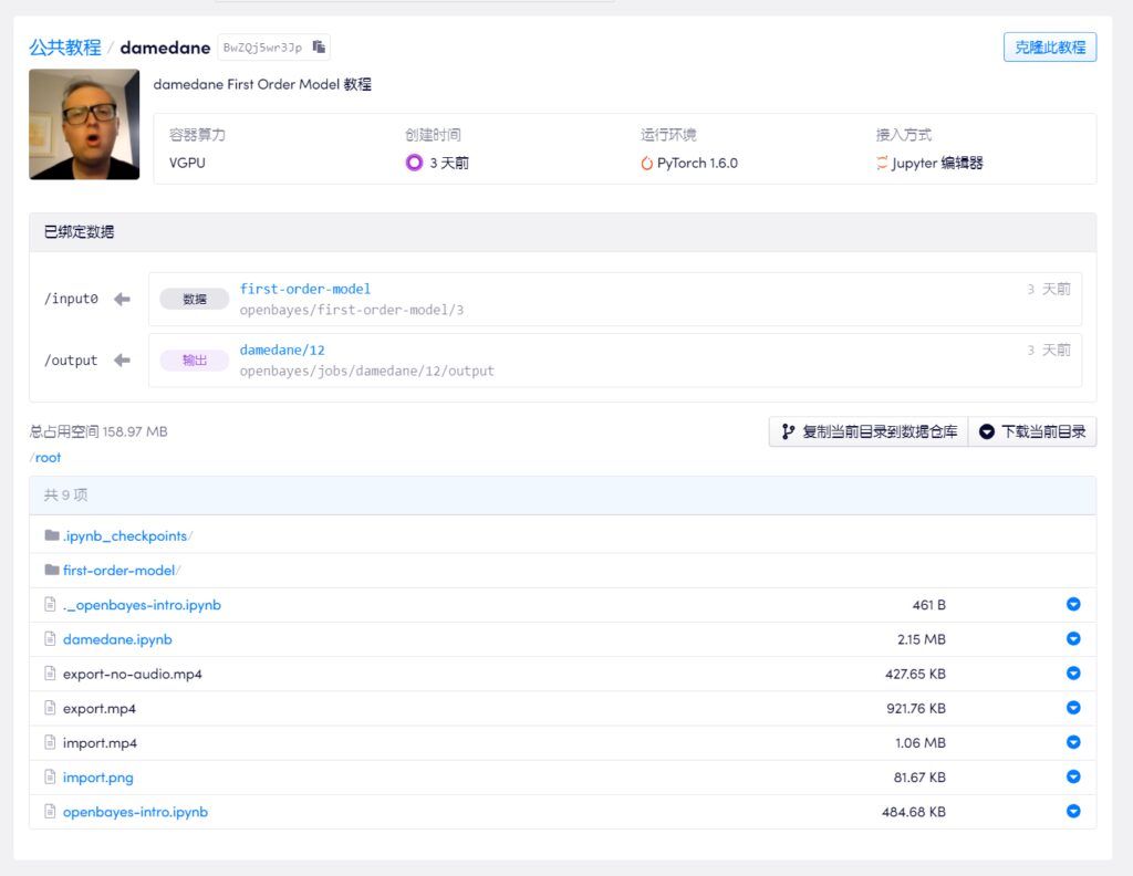 This tutorial video explains step by step, even a novice can easily learn this face-changing method. The up master also uploaded the notebook to the platform, and you can use it directly with just one click of clone.
