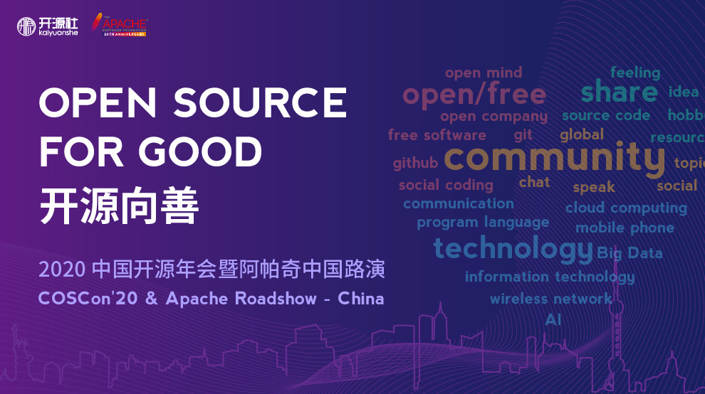 The 2020 China Open Source Conference (COSCon'20), the most influential annual open source event in the industry, will be held on October 24-25.This year's guest sharing will be a combination of online and offline formats, discussing the theme of Open Source for Good from 11 directions including artificial intelligence, open source governance, data technology, education and charity.