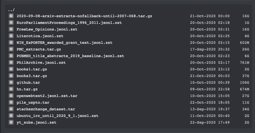 The dataset covers download links for all large text corpora as of September 2020. In addition, it also contains the plain text of all books in bibliotik (an online book resource library), as well as a large amount of code for training.