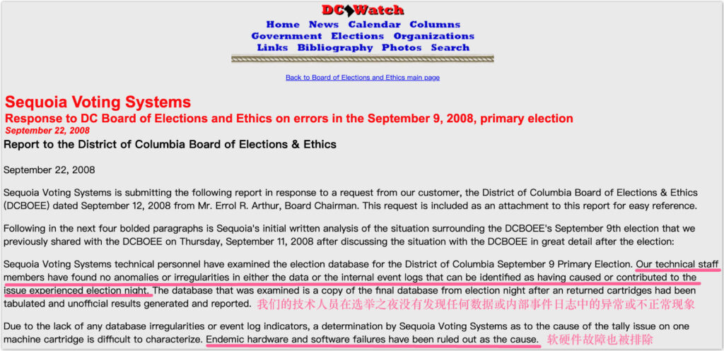 Sequoia later released a report blaming the problem on human error, ruling out hardware and software failures, and claiming the company had no way to track down problems with the scanning machines.