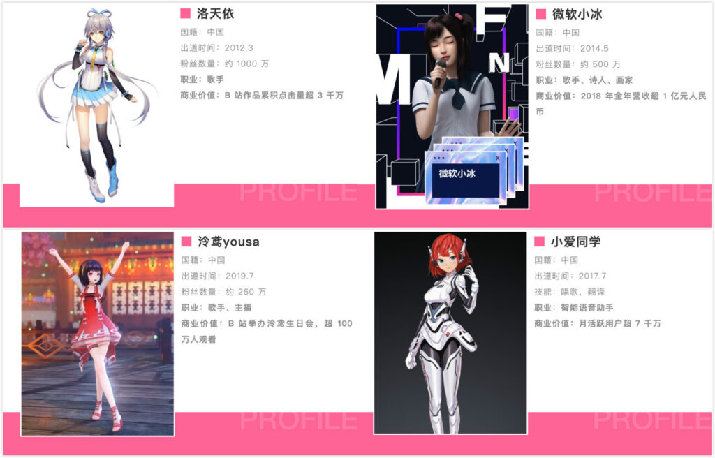In China, with the spread of ACG culture and the rapid development of artificial intelligence technology, a wave of virtual idols with their own characteristics have emerged. From Luo Tianyi, who debuted earlier, to Microsoft Xiaobing, B Station Lingyuan Yousa, Xiaomi's Xiao Ai, etc., which have emerged in recent years, they are gradually moving from the "ACG" to the "CAG" world, attracting more attention.