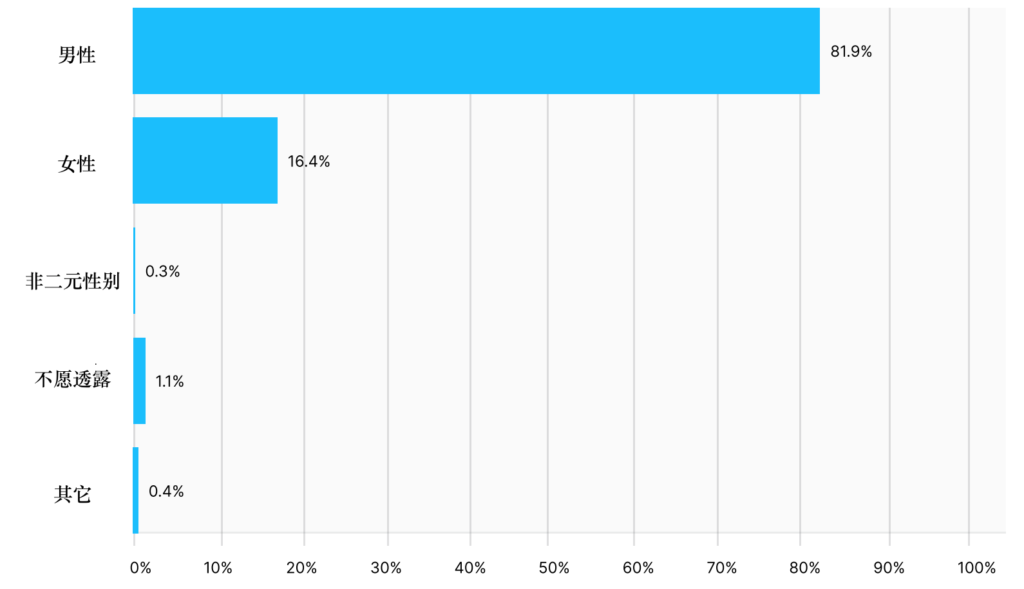Last year's survey showed that 84% were male, and this year the proportion has changed very little