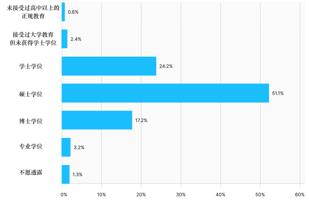 • More than half of the respondents hold a postgraduate degree