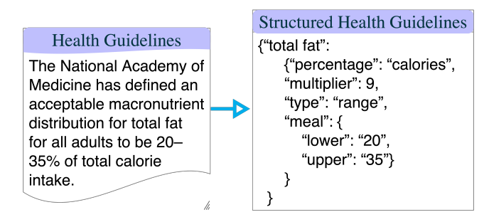 Each example in the dataset consists of a user query, dietary preferences, health guidelines relevant to the user, and a basic answer (i.e., recipe recommendation).
