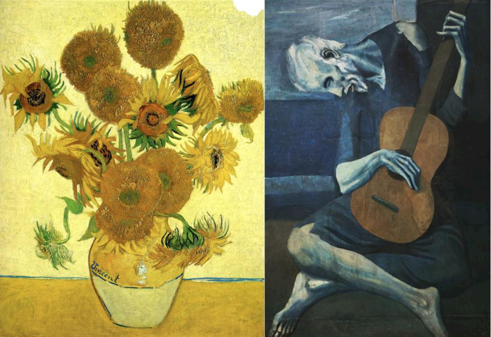 Van Gogh's "Sunflowers" and Picasso's "The Old Guitarist"