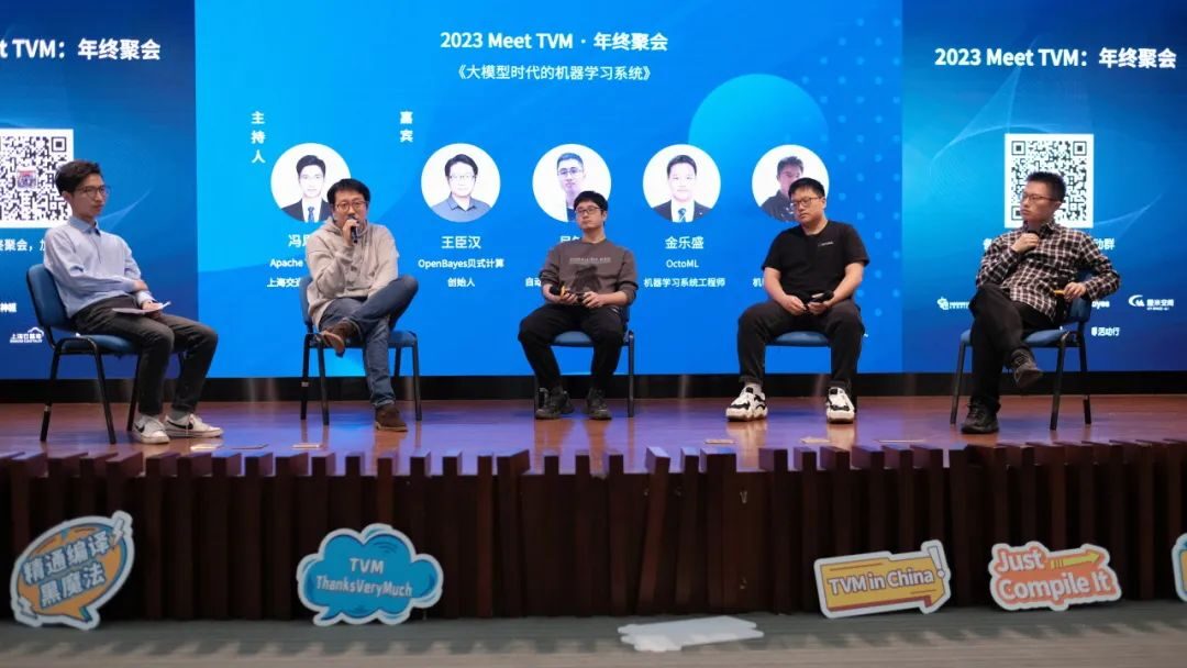 On December 16, 2023 Meet TVM · Year-end Party was successfully held at the Shanghai Entrepreneurs Public Training Base.Apache TVM PMC and Shanghai Jiao Tong University Ph.D. Feng Siyuan served as the host and had an all-round and multi-angle exchange and discussion with four guests on the theme of "Machine Learning Systems in the Era of Big Models".