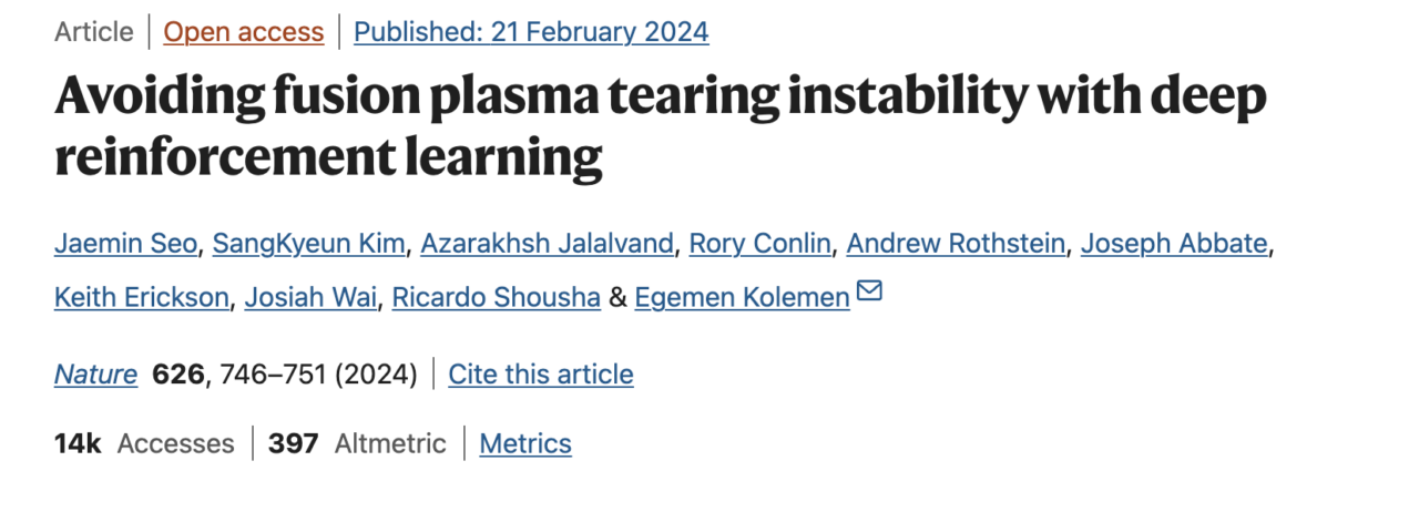 Plasma instability is an important challenge in nuclear fusion research. Using a multimodal dynamic model as a training environment for reinforcement learning AI, the researchers built a deep neural network that can predict the probability of future tearing mode instability based on real-time plasma characteristics. They also conducted experiments at the DIII-D National Fusion Facility in San Diego, and the results showed that the AI controller they developed can predict plasma instability 300 milliseconds before rupture.