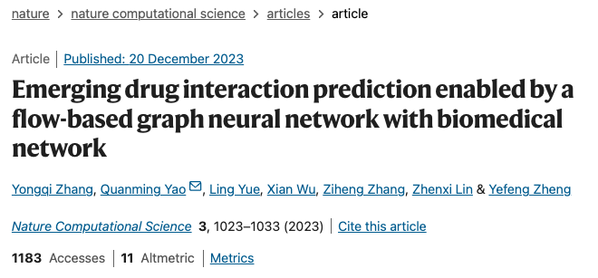 Emerging drug interaction prediction enabled by a flow-based graph neural network with biomedical network