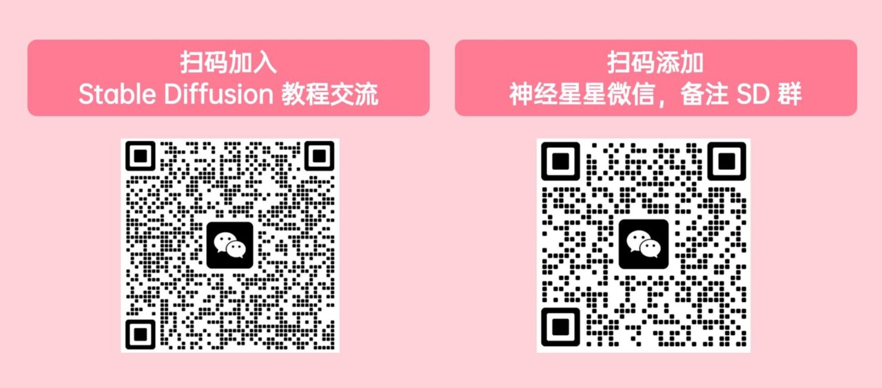We have also established a Stable Diffusion tutorial exchange group. Welcome friends to join the group to discuss various technical issues and share application results~