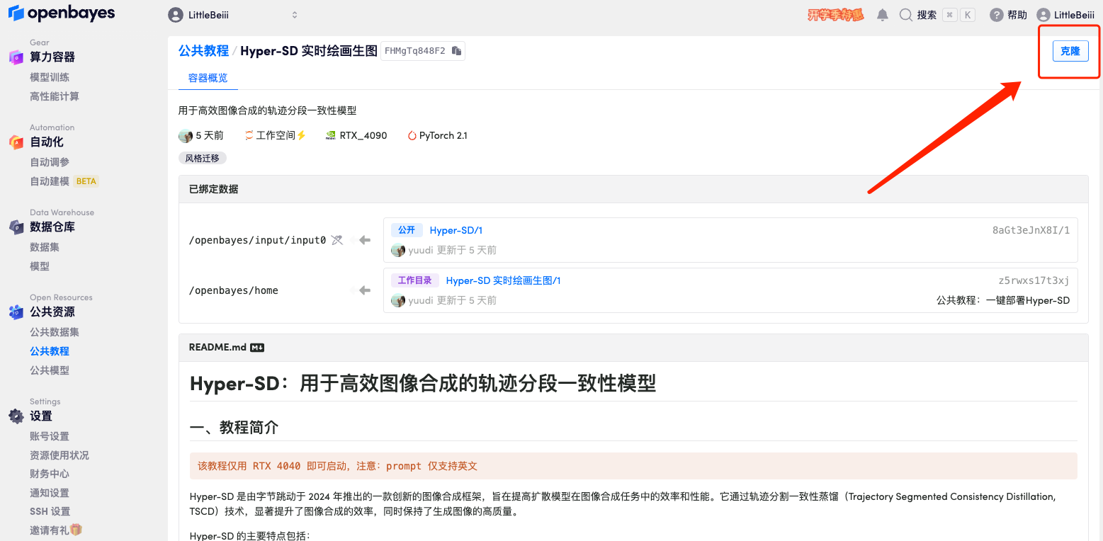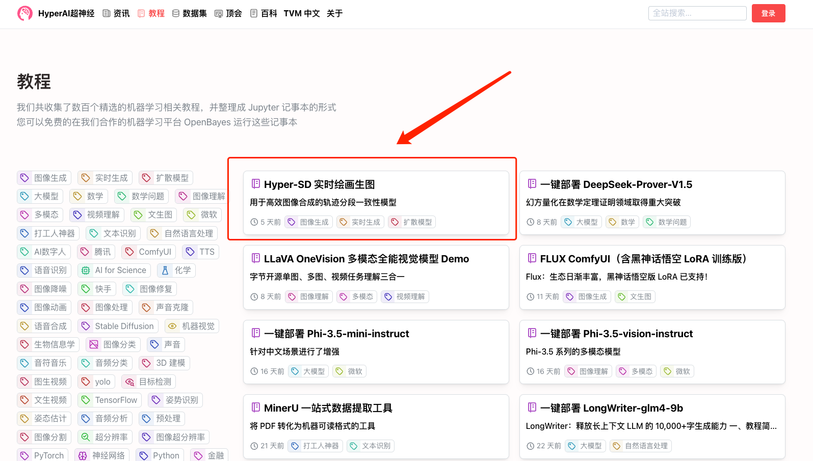 "Hyper-SD Real-time Drawing and Production" has been launched in the HyperAI Super Neural Tutorial section. You don't need to enter any commands, just clone it with one click to start!
