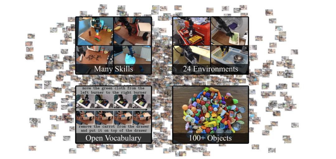 To improve the robot's generalization ability, the researchers collected a large amount of task data in a variety of environments with different objects, camera positions, and workspace positioning.Each trajectory is accompanied by natural language instructions corresponding to the robot's task.The skills learned from this data can be applied to new objects and environments, and even used across institutions, making this dataset a great resource for researchers.