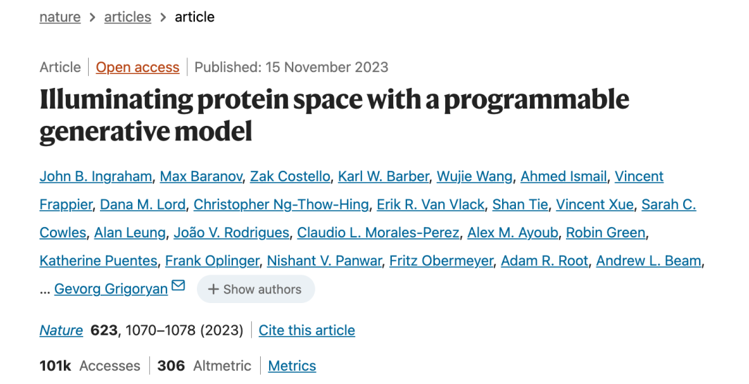 This research direction had an important breakthrough in November 2023, when Generate published a generative AI model called Chroma in Nature. Chroma provides scientists with a new design tool by inferring the relationship between protein sequence, structure and function.