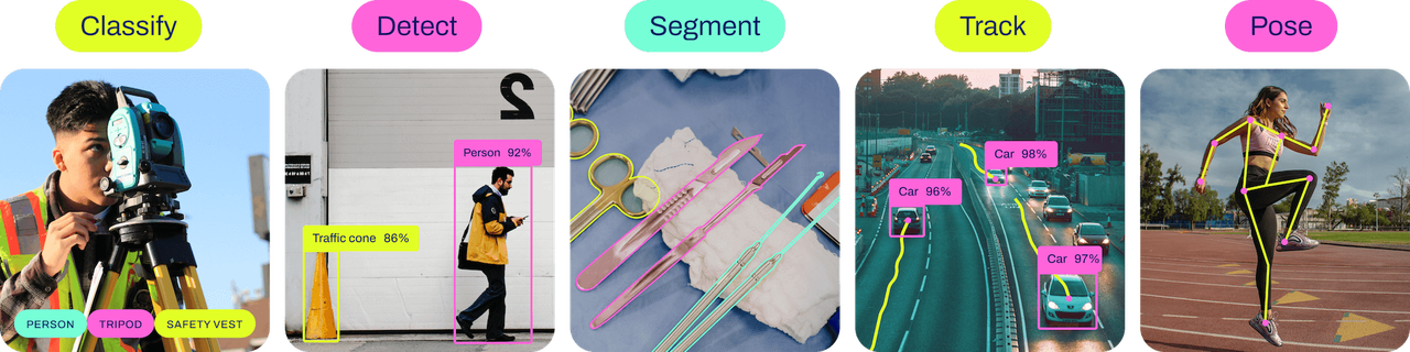 Important Update:Delivering state-of-the-art (SOTA) performance in multiple tasks including detection, segmentation, pose estimation, tracking, and classification, it leverages capabilities from a wide range of AI applications and domains.