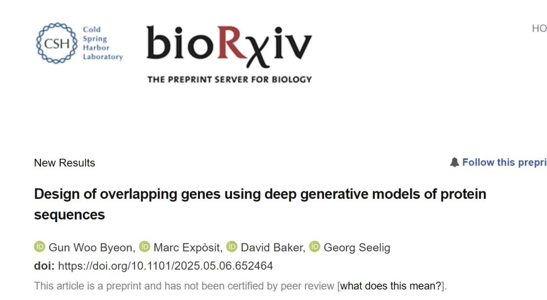The relevant research results have been published as a preprint on bioRxiv under the title "Design of overlapping genes using deep generative models of protein sequences".