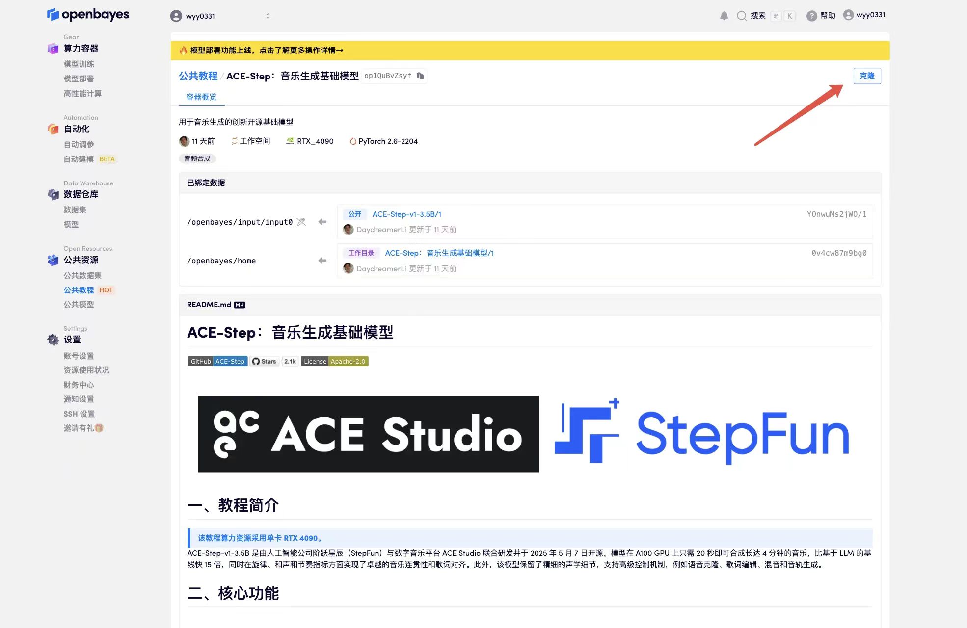 at present,"ACE-Step: Basic Model for Music Generation" has been launched in the "Tutorial" section of HyperAI's official website.Click the link below to experience the one-click deployment tutorial ⬇️