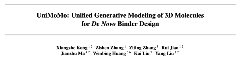 The related results were selected for ICML 2025 under the title "UniMoMo: Unified Generative Modeling of 3D Molecules for De Novo Binder Design".