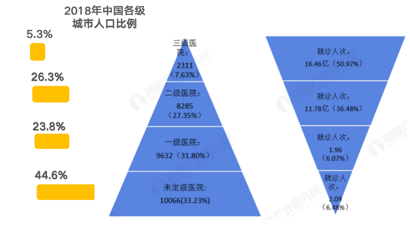 This is not only true for the pharmaceutical industry, but also for the entire medical industry. As shown in the figure below,According to statistics in 2018, the number of Class III hospitals in China accounted for 7.63% of the country, but they were responsible for 50.97% of the country's outpatient volume.A series of problems have emerged, including uneven distribution of medical resources, low diagnosis and treatment efficiency, and pressure from changes in the disease spectrum caused by an aging population. Therefore, in the era of smart healthcare, it is imperative for AI to accelerate medical transformation.