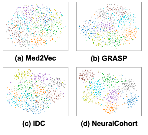 Compared with traditional medical cohort construction methods, NeuralCohort also shows significant advantages. Traditional methods usually divide cohorts based on limited features such as gender, age, diabetes diagnosis, and hypertension diagnosis. The cohorts generated by this method are relatively coarse-grained, which is difficult to meet the needs of cohort pattern mining, and it is easy to group dissimilar patients into the same cohort, introducing noise. In contrast, NeuralCohort uses the sequential visit level representation of patients within and between cohorts to operate at a fine-grained level.This improved the clinical similarity of patients in the cohort in the MIMIC-III dataset by 23.5%.