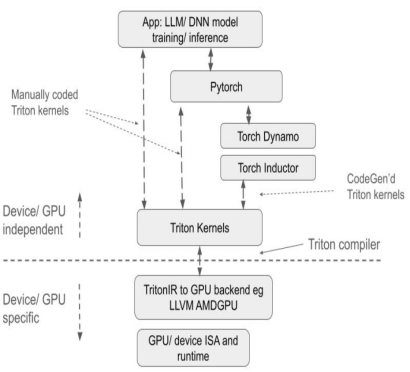 first,As an open source project, Triton provides a Python-based programming environment. Users can implement GPU Kernel by developing Python Triton code without paying attention to the details of the underlying GPU architecture, which greatly reduces the difficulty of development and significantly improves product development efficiency compared to other GPU programming methods such as AMD HIP. Its compiler uses a variety of optimization strategies based on GPU architecture characteristics to convert Python code into optimized GPU assembly code, realize automatic compilation of upper-level tensor operations to underlying GPU instructions, and ensure efficient operation of the code on the GPU.