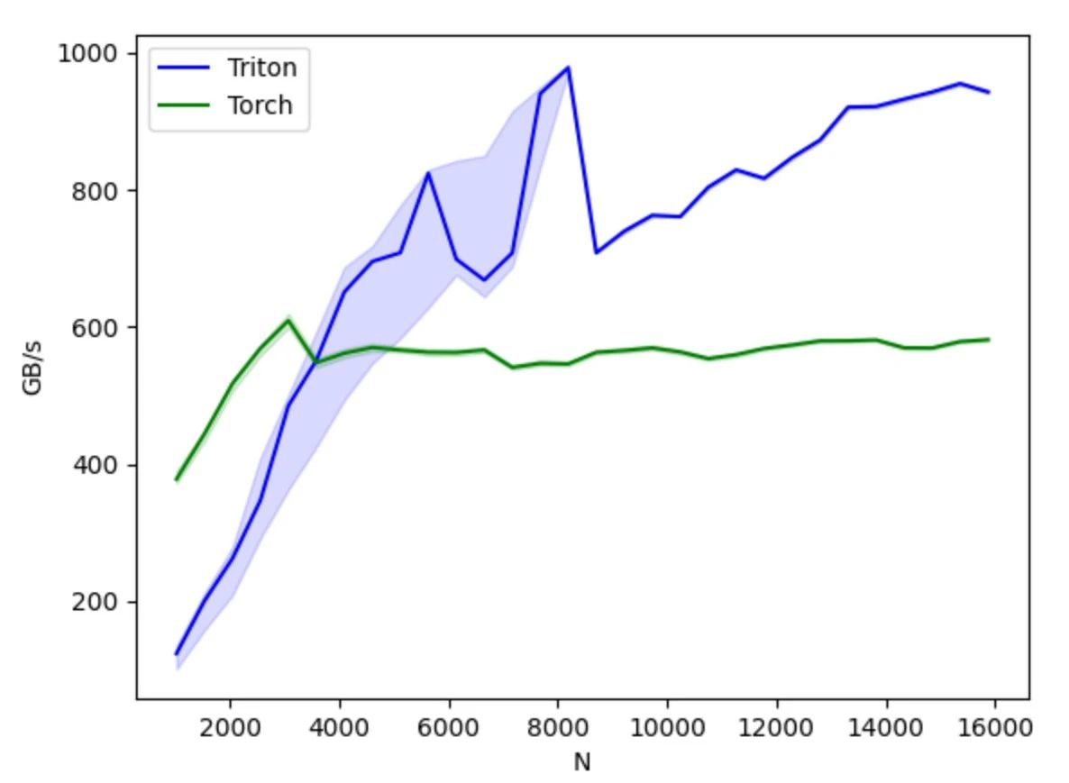Secondly,Triton has good cross-hardware compatibility. The same set of code can theoretically run on a variety of hardware, including NVIDIA and AMD GPUs and domestic GPUs that support Triton. In terms of performance and flexibility, it can provide better performance and optimization flexibility than platforms such as PyTorch, and can hide the underlying GPU operation details compared to CUDA, allowing developers to focus more on algorithm implementation.
