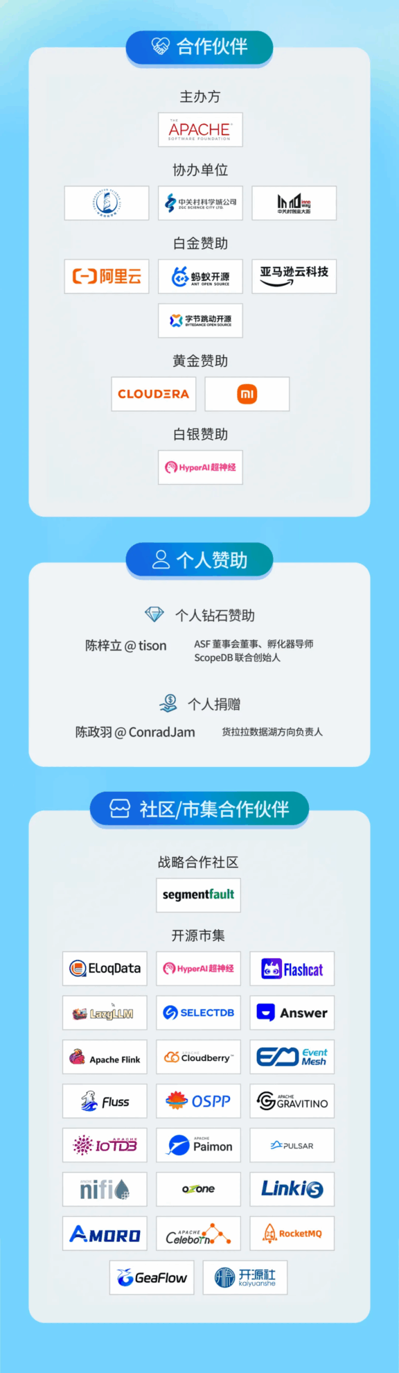 The AI topic of this conference will be jointly presented by Wang Chenhan, founder and CEO of OpenBayes Bayesian Computing, Tan Zhongyi, member of the Apache Software Foundation, and Du Junping, founder and CEO of Datastrato, as expert producers. They will also bring you the latest information and cutting-edge practices in the construction and development of the Apache community from 14:00 to 17:15 on July 25. HyperAI will participate in this event as a cooperative community and set up a market booth. Everyone is welcome to come and play~