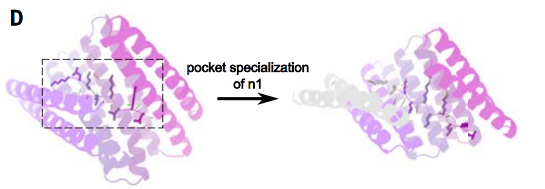 In the original and optimized designs of dynorphin A, the peptide exhibited multiple conformations, including random coils, partial β-strand structures, and partial α-helical structures, as shown in Figure C above. Although dynorphins A and B share a sequence similarity of 62%, their respective binding proteins do not cross each other and only bind to their respective targets. At the same time, the co-crystal structure of the designed protein DYNA_1b7 bound to dynorphin A is highly consistent with the computational design model, especially at the core binding interface (Figures DE above). NMR data also further confirmed thatThe originally disordered dynorphin A's skeleton becomes ordered after binding to the designed protein, once again confirming the effectiveness of the induced fit mechanism (Figure F above).