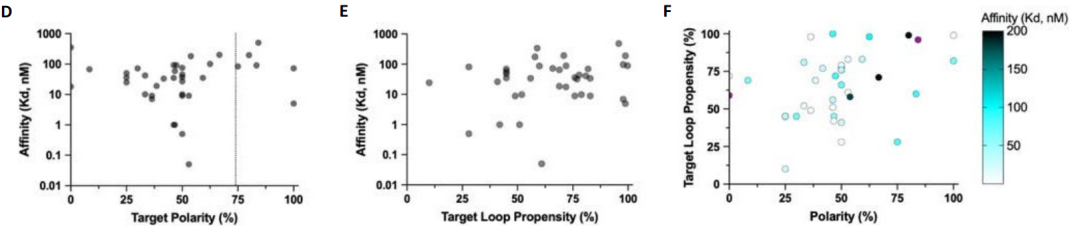 Subsequently, the researchers characterized these designed four-repeat unit versions of the binding proteins through fluorescence polarization experiments. The results showed that they exhibited nanomolar binding ability for the LK and PV repeat peptides; but had weaker binding ability for the more polar RT and YD, and no binding signal was detected at all for the highly flexible GA.