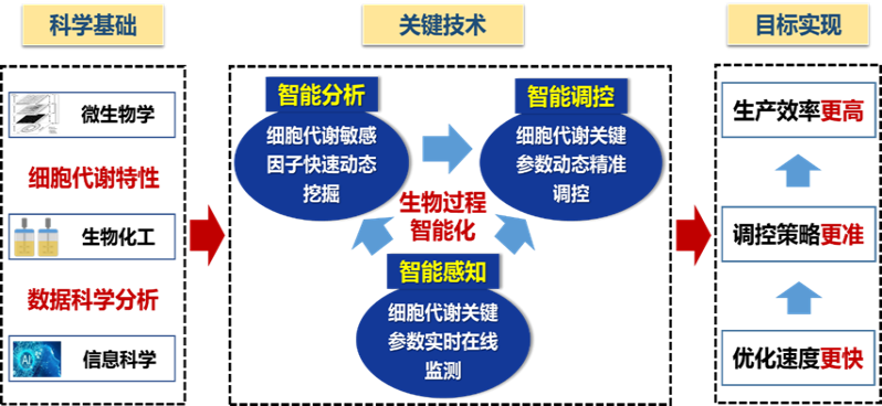 Entering the intelligent era, the overall idea of intelligent biomanufacturing revolves around the complex metabolic processes of cells.The core lies in realizing an intelligent full-chain innovation system of intelligent perception, intelligent analysis and intelligent regulation.