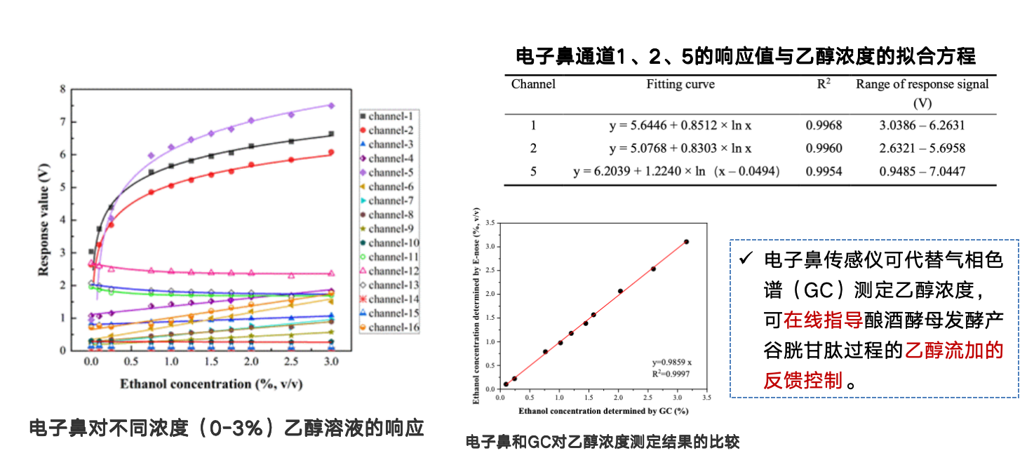 The second is fuel ethanol production. In the fuel ethanol fermentation process, we also use advanced sensors and modeling, integrating advanced sensing technologies such as electronic nose, living cells, and online Raman to achieve real-time monitoring of key indicators in the industrial ethanol fermentation system.The detection time of electronic nose is 40 times shorter than that of HPLC.A data-driven approach ultimately revealed that the optimal control parameter was glucose concentration. However, by integrating this information with the factory's current operations, we discovered that temperature was a second key control factor, and controlling temperature resulted in higher ethanol yields. By increasing the circulation volume and controlling the temperature, ethanol production increased by over 3%, generating direct economic benefits of nearly 60 million yuan per year. This project helped the company become the only nationally recognized green and smart factory in the industry.