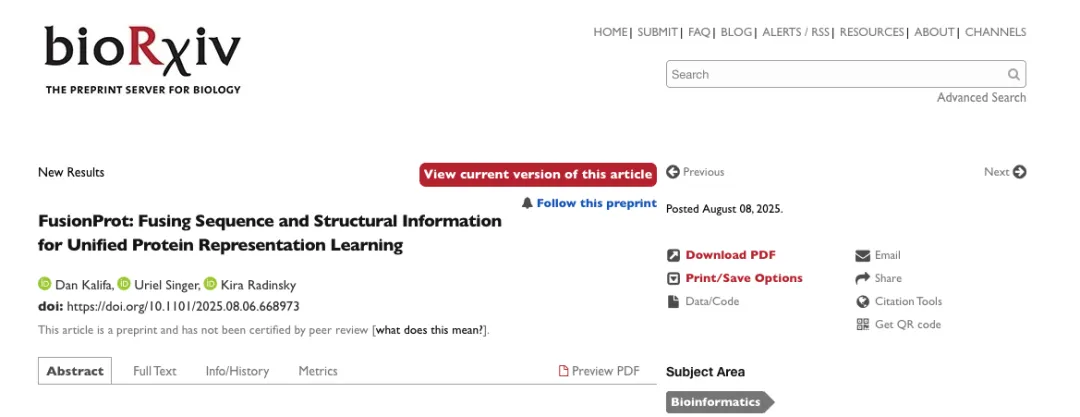 The related research was published on bioRxiv under the title "FusionProt: Fusing Sequence and Structural Information for Unified Protein Representation Learning."