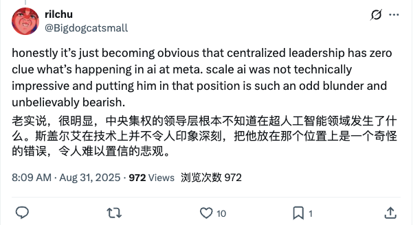 Meta has been going through a rough patch recently, with high-priced talent acquisitions, frequent reorganizations of its super-intelligent team, new models turning closed-source, core members leaving, internal management in disarray, and a falling out with Scale AI. The talent acquisition strategy, which was originally intended to catch up with competitors like OpenAI and Google, has instead dragged Meta into a predicament.