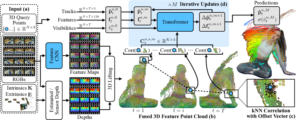 Based on this, ETH Zurich and Carnegie Mellon University jointly proposed the first data-driven multi-view 3D point tracking method, which aims to track arbitrary points in dynamic scenes using multiple camera perspectives. This method's feed-forward model directly predicts corresponding 3D points using only a small number of cameras, enabling robust and accurate online tracking.