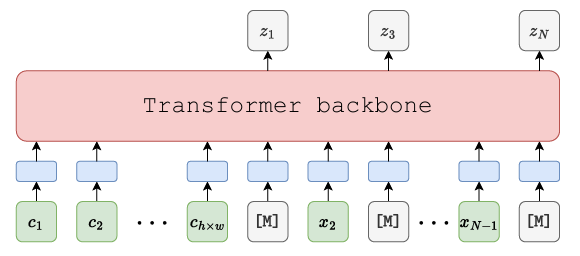 In addition, since latent tokens are continuous vectors, traditional classification heads cannot model their distribution. Therefore, a diffusion model head (a small MLP implementation) is connected after the Transformer output to predict the distribution of latent tokens in the mask (as shown in the figure below).