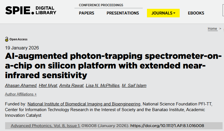 The related research findings, titled "AI-augmented photon-trapping spectrometer-on-a-chip on silicon platform with extended near-infrared sensitivity," have been published in Advanced Photonics.