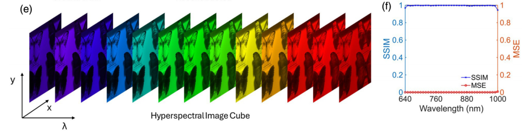 To further demonstrate its potential for solving complex problems, the research applied the system to a hyperspectral imaging task. Using a trained neural network, the system successfully reconstructed a 512×512 pixel hyperspectral image cube from the open-source butterfly dataset using only the responses of 16 detectors. Finally, the researchers used mean squared error (MSE) and structural similarity index (SSIM) to quantitatively evaluate the overall reconstruction accuracy. Across all reconstruction wavelengths, the average MSE was as low as 2.3×10⁻⁴, and the average SSIM was as high as 0.9926.This demonstrates that the system possesses extremely high spectral fidelity, proving that AI can decode and reconstruct complex high-dimensional spectral spatial information from minimal hardware information.It has completed the leap from "point spectrum" to "spectral imaging".