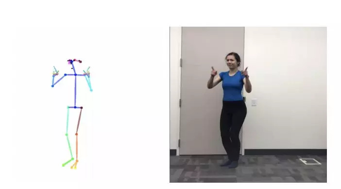 This algorithm also ignores people's clothing and only captures the key points of the actor's specific posture to produce a stick figure model.